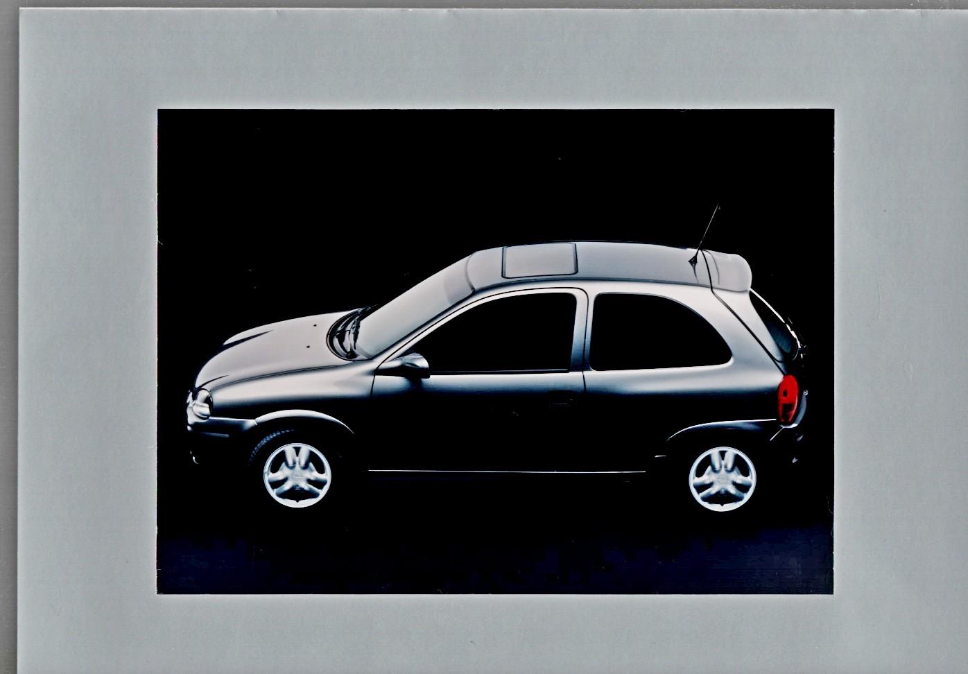 Groot folio map met daarin omslag met 7 foto s van deze opel omkadert met zilverkleurig papier.. Binnenzijde grote map met toelichtende tekst. Waarschijnlijk promotiemateriaal voor beurs bestemd voor wederverkopers / dealers