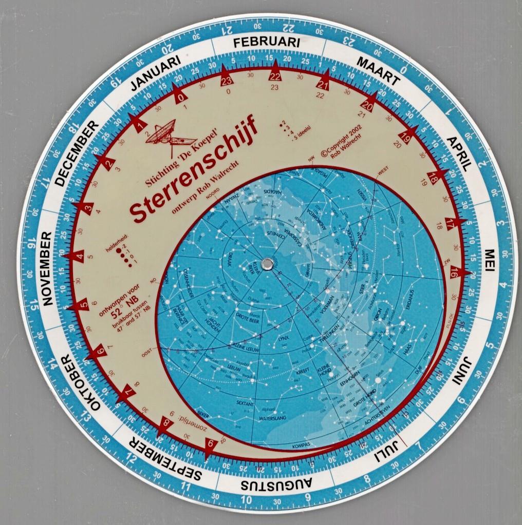 Ronde plastic schijf daarop een draaibare transparante schijf voor instelling op datum.
