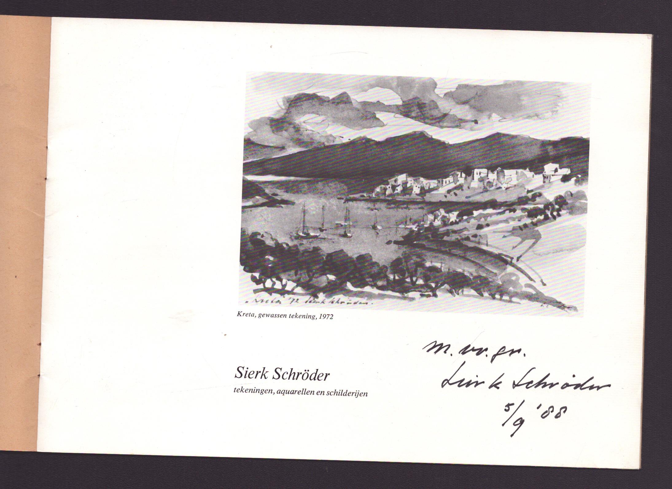 Omslag met diverse tentoonstellings folders + liggend formaat boekje 25x18Cm 12p. Gesigneerd en gedateerd 5/9 1988 + persoonlijke brief (origineel ?) + 2 originele tekeningen.