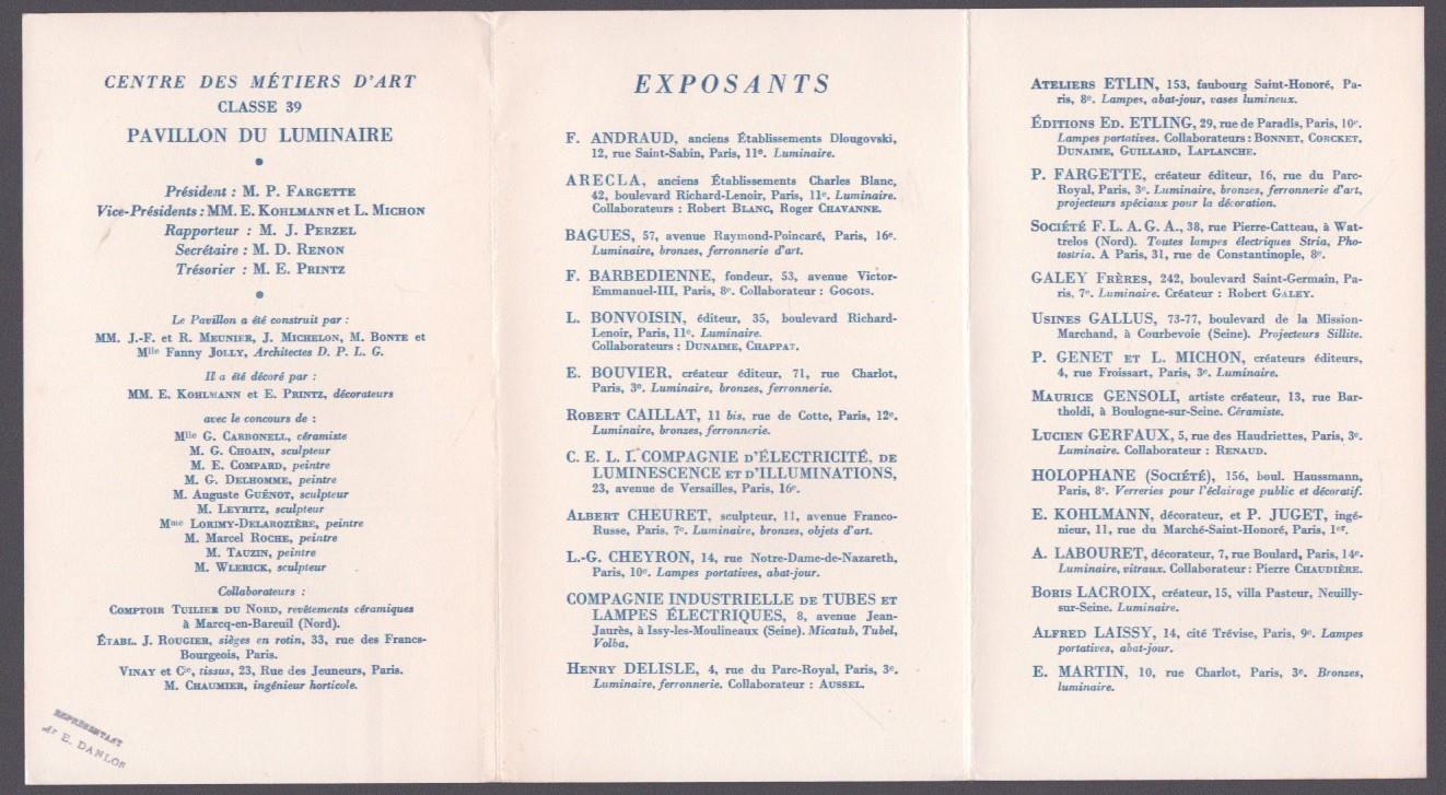 Le Luminaire – Exposition Internationale Paris 1937 (Classe 39)