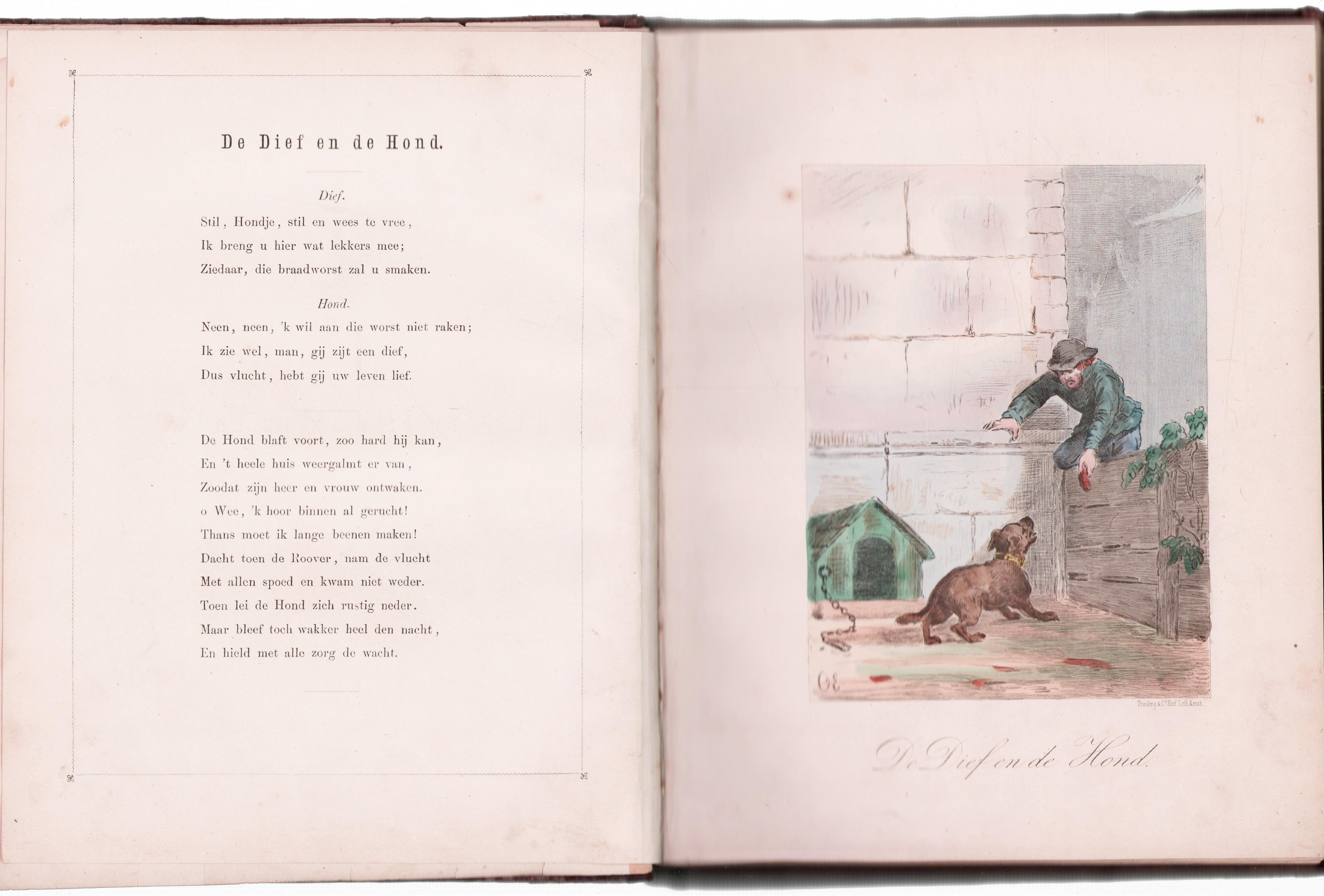 c 92 pag tekst + 48 handgekleurde litho platen in leer gebonden. Binding slecht.