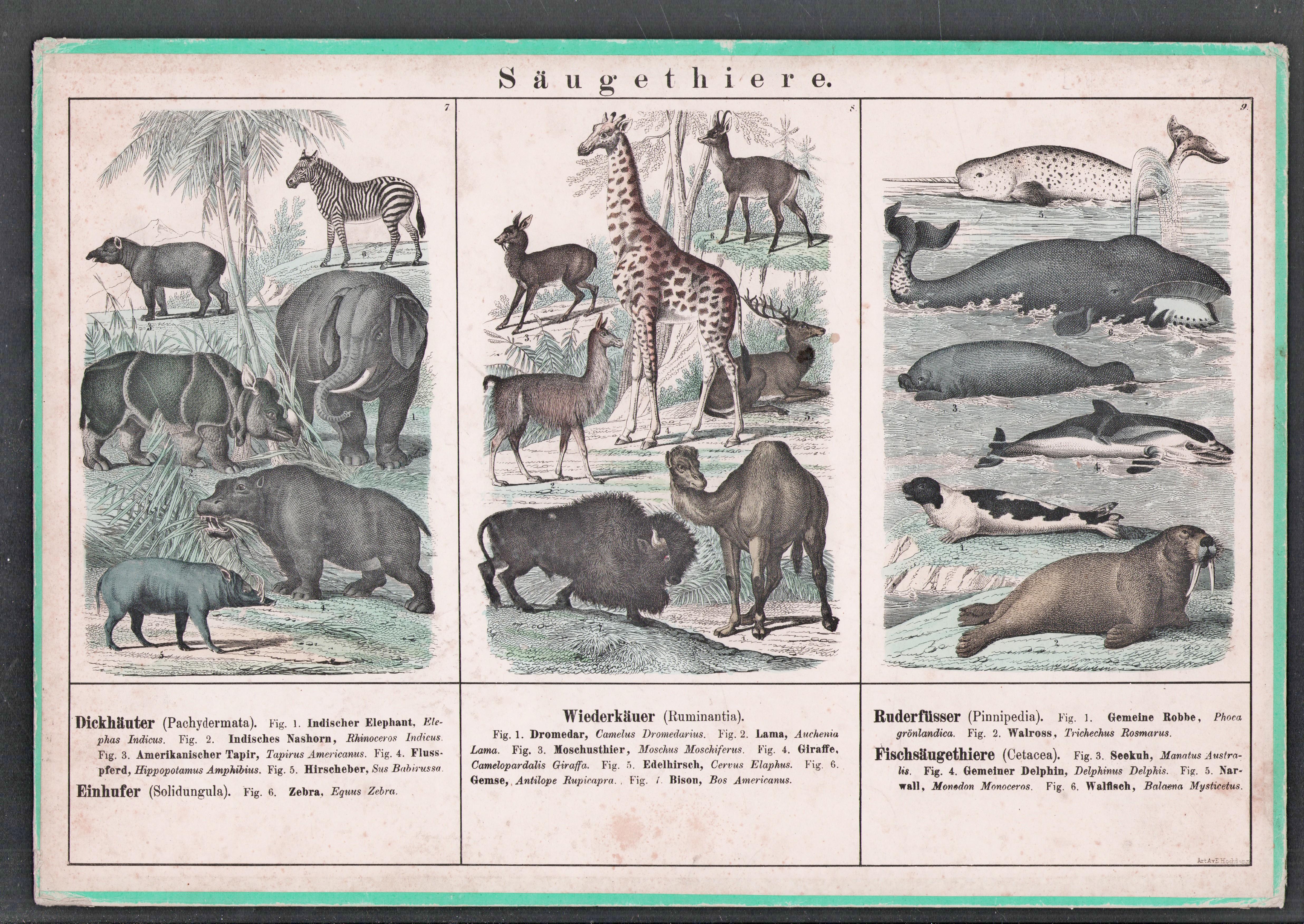 Schoolplaat (40,5x28 Cm.) / op karton geplakte litho -Saugethiere (1)