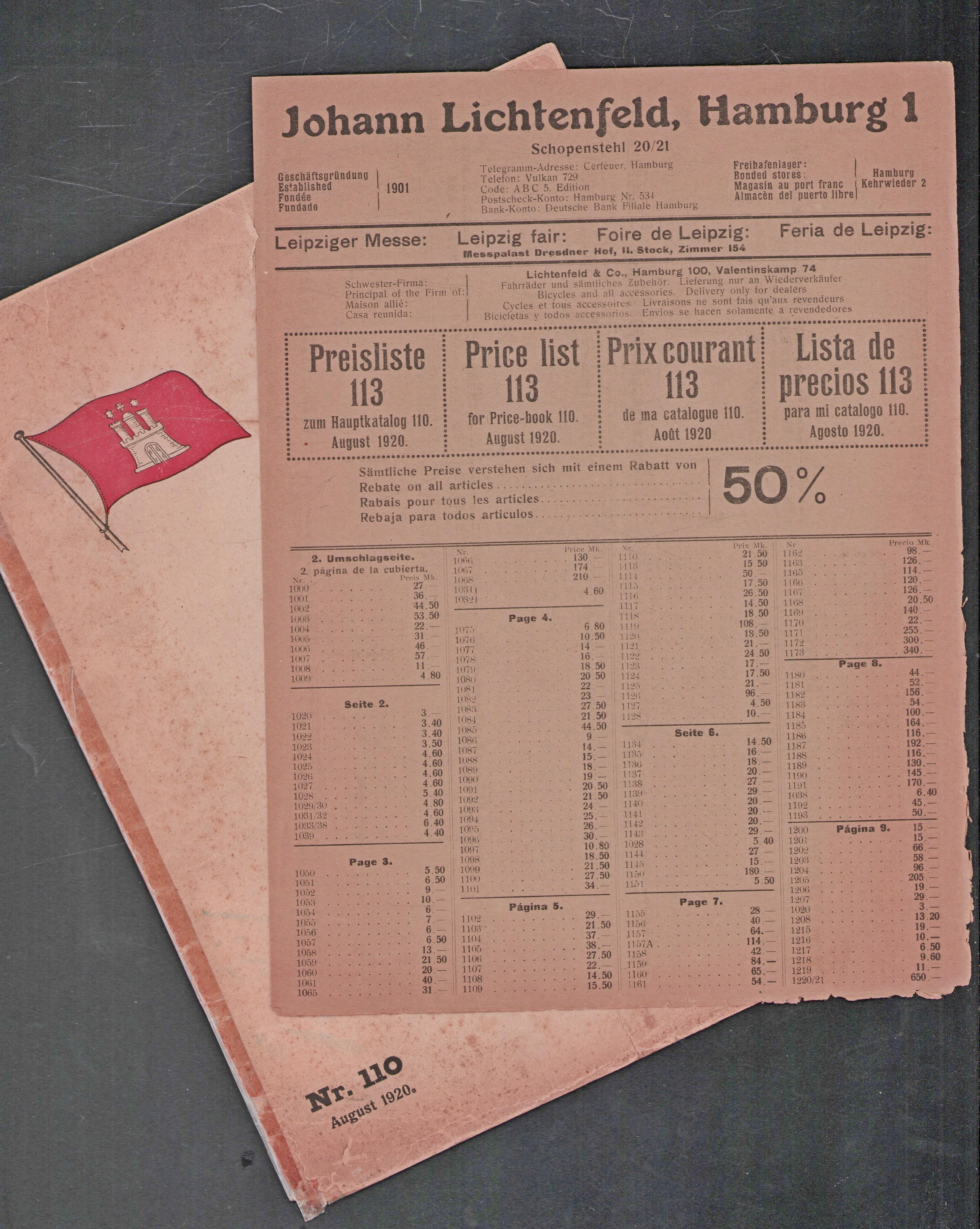 1920 - 1951 (nr 110) Johann Lichtenfeld - Hamburg 1 Catalogus electrieche huishoudelijke apparaten