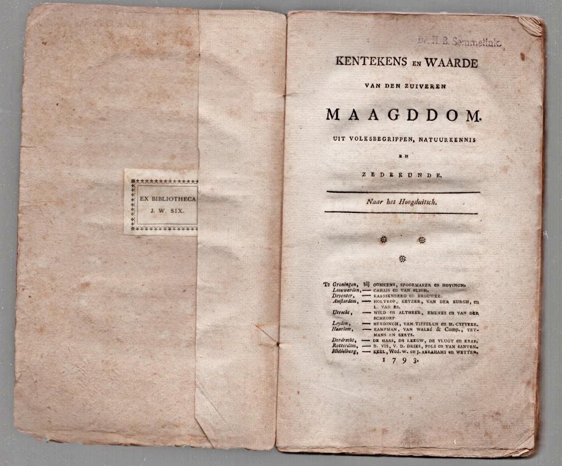 Kentekens en waarde van den zuiveren maagddom. Uit volksbegrippen, natuurkennis en zedekunde. Naar het Hoogduitsch.