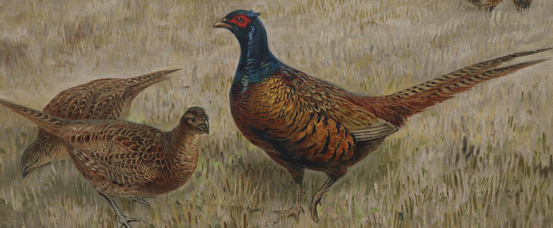 The pheasant is a wild bird in Europe that is often hunted. Beautiful plumage - The Pheasant (Phasianus colchicus) is a species of bird in the Phasianidae family. The genus name is derived from the Latin phasianus, from the city of Phasis, present-day Poti. The specific name colchicus is Latin for "from Colchis" (nowadays in Georgia), a country near the Black Sea where Europeans first got to know pheasants and from which this exotic species was introduced.