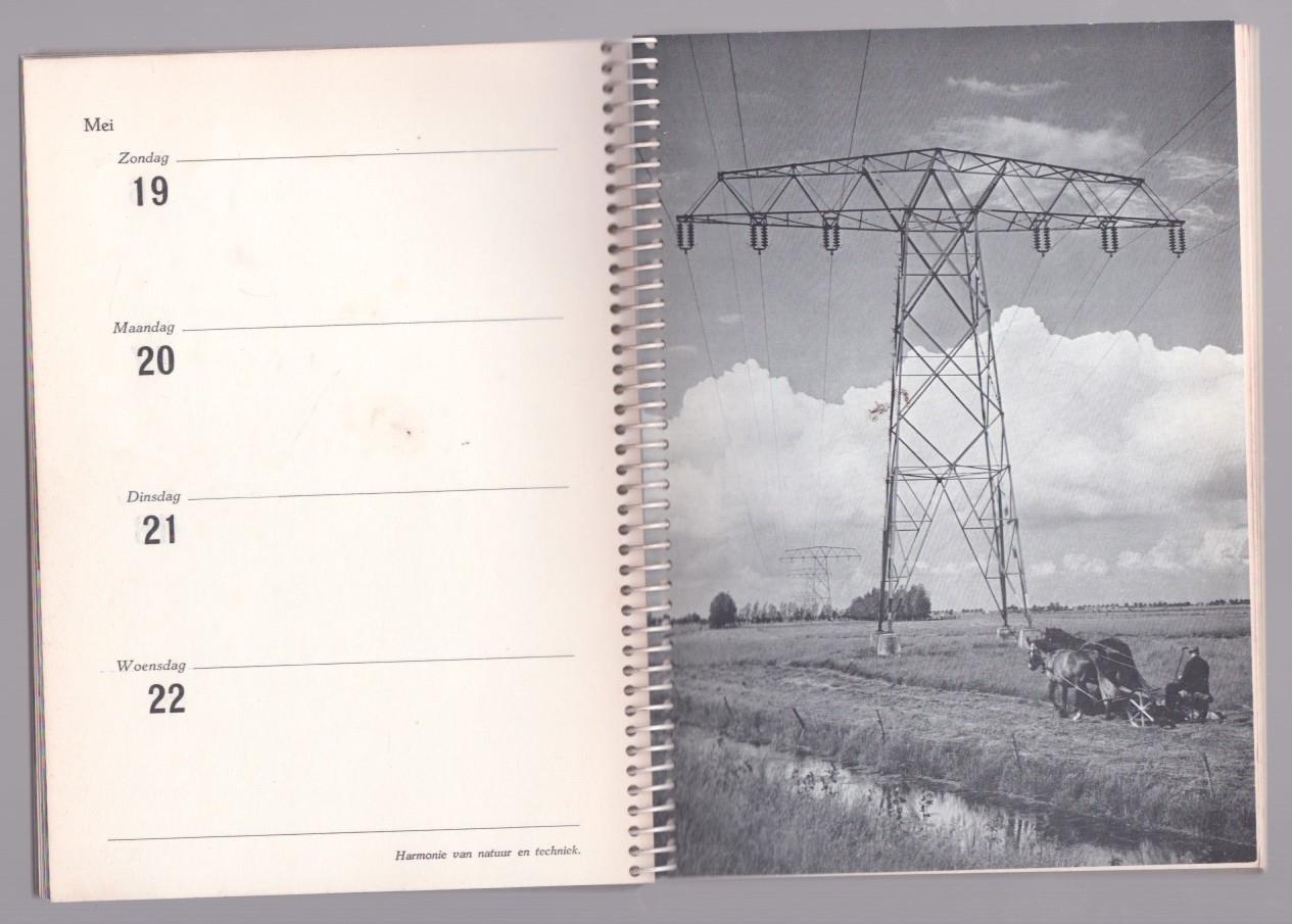 spiral band - spiral bound., 10 pag. inleidende tekst. vervolgens agenda met 4 dagen per blad. En tussen de agenda pag. prachtige meest z/w foto s. Achterin nog 3 jaarkalenders (1956 -1957 - 1958).,16x21 Cm