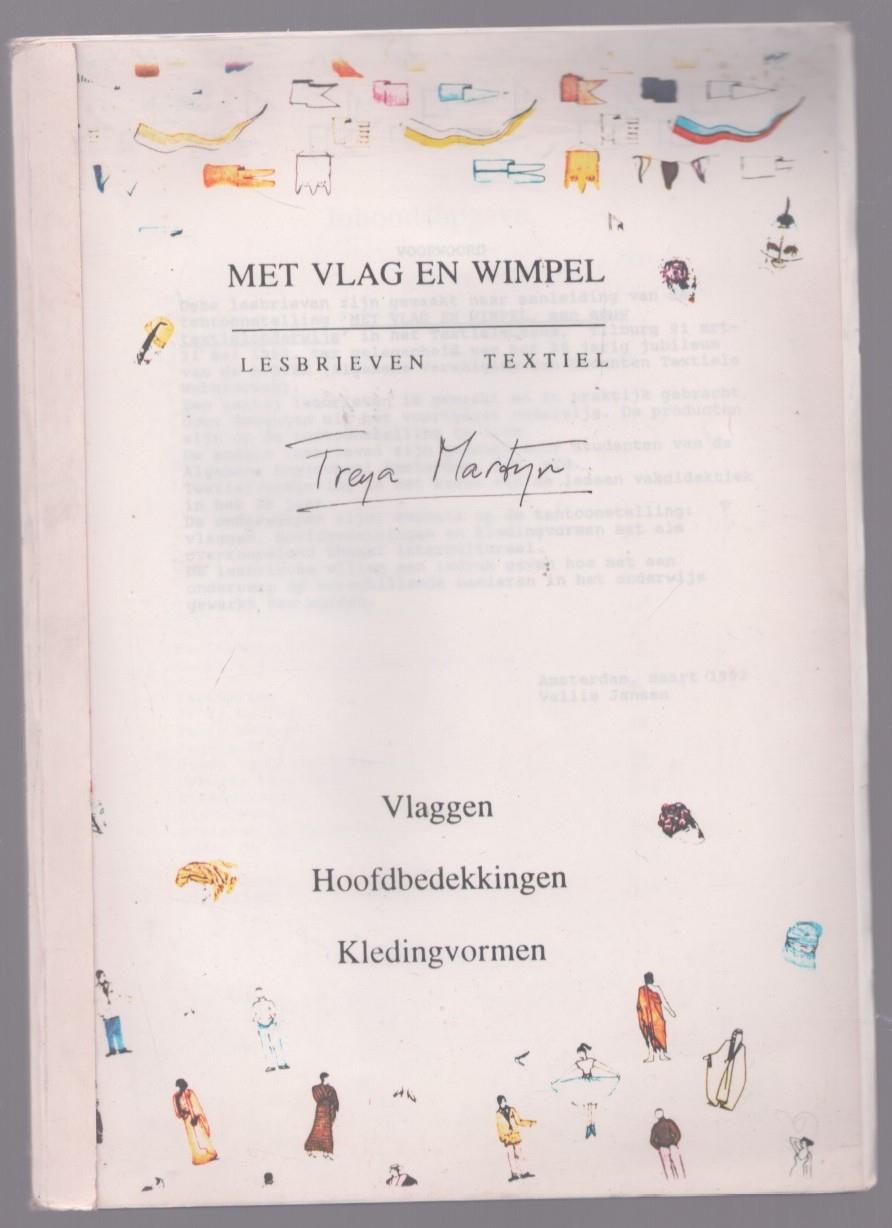 Soft cover., 121 pag., Rijk van illustraties voorzien (z/w)., Plastic omslag. Duidelijk uitgave in zeer kleine oplage. Lesbrieven gemaakt naar aanleiding van de tentoonstelling Met Vlag en Wimpel, Een eeuw textielonderwijs. in het textielmuseum.